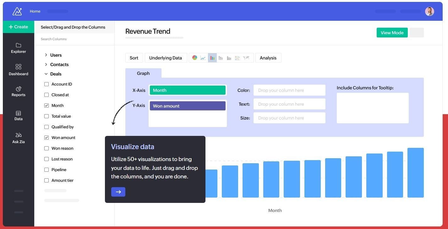 - Zia AI assistant: Ask questions in plain language, spot anomalies, and get suggestions for charts and reports.