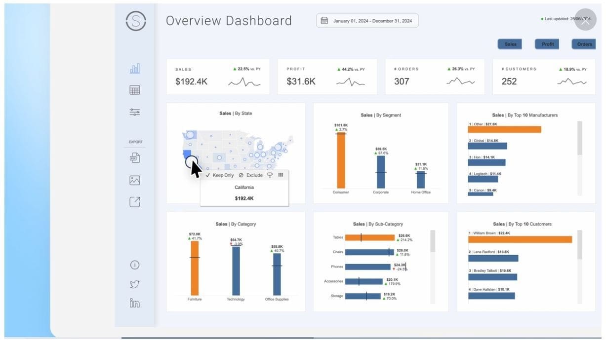 What is business intelligence software?Business intelligence software connects to data from systems like CRMs, accounting tools, and spreadsheets, and then turns that information into dashboards, reports, and charts that teams can use to make decisions.